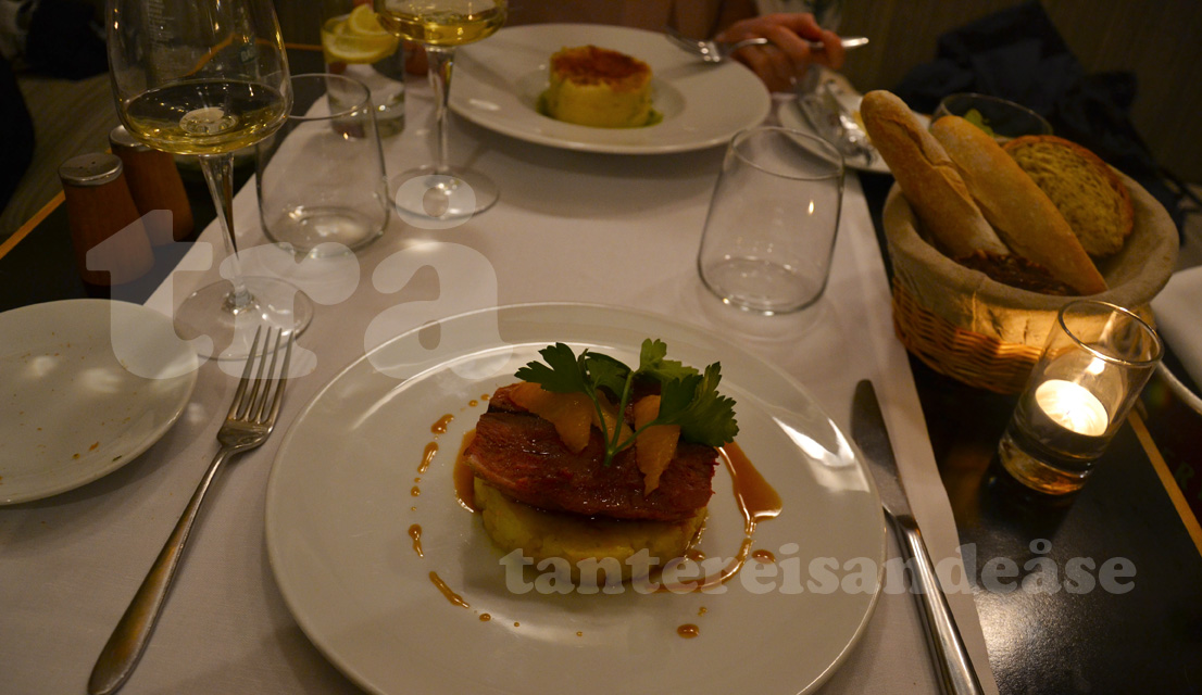 og for eit brilliant valg! eg kunne ikkje hatt ein betre setting for 30 årsdagen min. maten, servicen, champagnen -alt var tres perfait! av mat kan eg absolutt anbefala krabbe og reke ravioli til forrett, tunfisken til hovedrett og (etter servitørens anbefaling) verdens beste makron. etter servitørens forslag tok me taxi til ein uteplass som skulle vere bra greier. denne hadde eit lukka arrangement så me måtte ta til takke med naboen. det gjekk fint. når dagen var omme var eg supernøgd med ein perfekt fødselsdag!