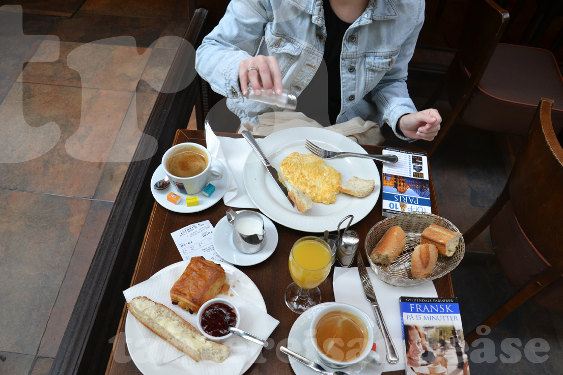 neste dag var planen å reise til versailles. men me tok oss tid til frukost på denne fine føremiddagen før me sette oss på toget, som tok toppen 15 min.