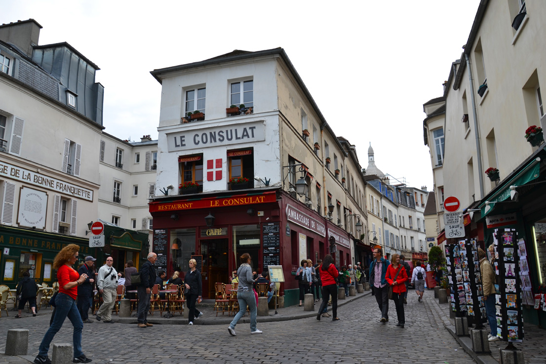 neste dag var ein heilt spesiell dag. det var nemleg tante reisande sin 30 årsdag. ein presang hadde eg allerede fått på flesland: eit feiande flott kamera! dette har mannen allerede blitt heilt forelska i og tar masse fine bilder, noko som eg er veldig glad for! men gåvedrysset fortsette denne mandagsmorgonen, med pengegåver frå mamma & pappa, syster & nevø, og klær frå mannen. heldig 30 åring! i tillegg strøymde gratulasjonane på, både på facebook og sms. at det var ein overskya dag var litt keisamt, og at eg hadde kledd meg for solskin var kanskje enno meir keisamt, men det gjekk fint. ein har jo blitt litt meir hardhuda når ein rundar 30. fødselsdagsfrukosten vart innteke på den koselege kafeen nedanfor hotellet (me budde på forrige gong) på montmartre.