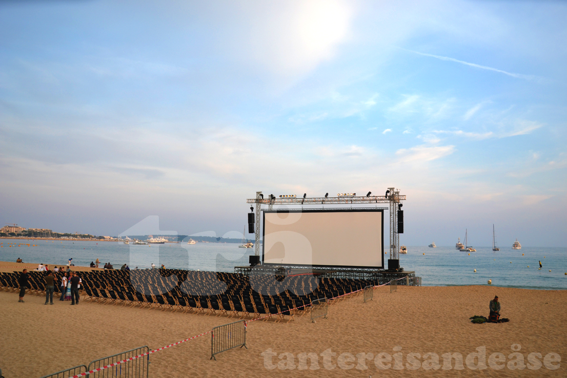 ending up at the beach just beside a large stage with hundreds of chairs placed in front.