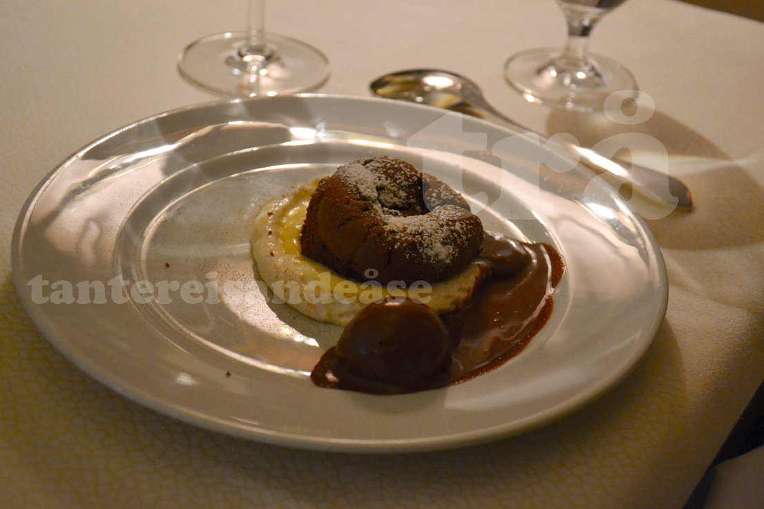 det var ledig bord til oss, men resepsjonsdama spurte om det var greitt at mannen tok på seg ei penjakke som ho kom med. som sagt så gjort. med ei to nummer for stor dressjakke entra me restauranten som var nydeleg med store bilder på veggene med motiv frå provence og matchande lavendelfarga velourtapet. servitørane var merksame, hyggelege og avslutta kvar setning med «you’re welcome». me valde «tasting menu» frå den rikhaldige lunchmenyen. på rekkje og rad kom små rettar på fat som kunstverk framfor oss.