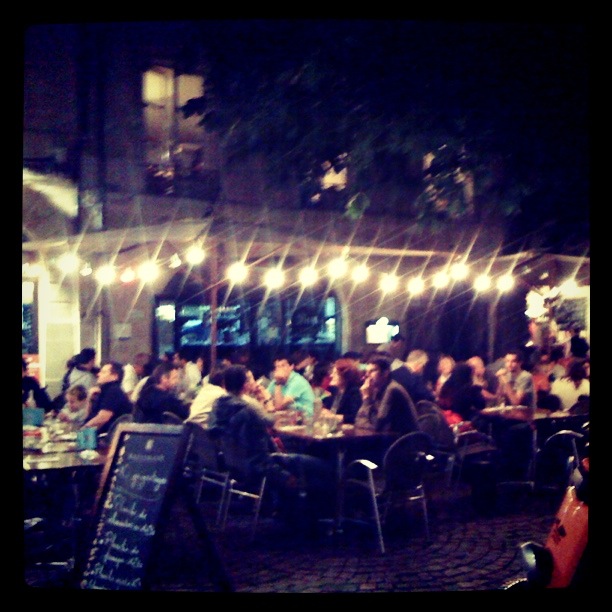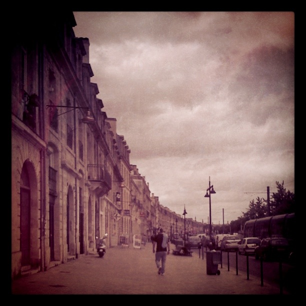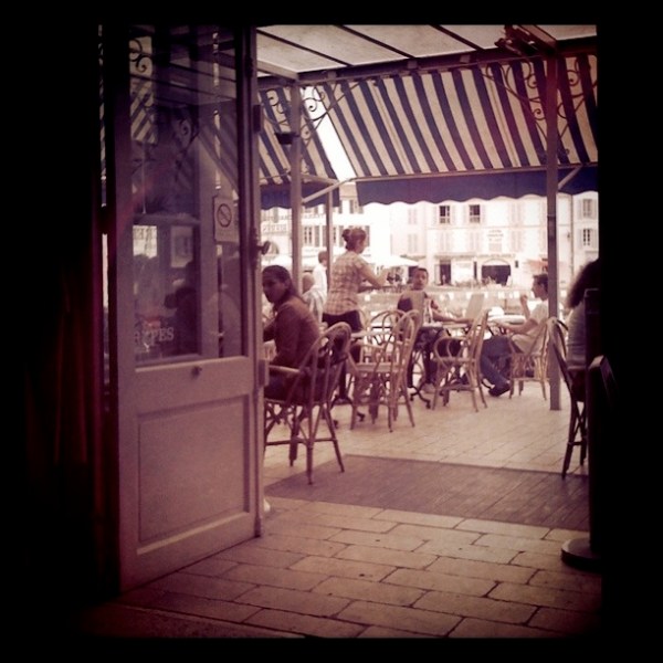 laurdagen var nok ein dag der yr.no hadde blingsa kraftig med vêrvarslinga. det er litt trist å sei, men heile turen kunne ha blitt kansellert fordi me stola så blindt på yr. det har jevt over vore mykje finare vêr enn dei har spådd. uansett, me gjekk mot eit kunstgalleri me hadde sett plakatar for etter å ha ete litt frukost. utstillinga var bilder av tobeen frå bordeaux som måla kubistiske bilde. me lika stilen, som var prega av klare fargar og kvardagslege motiv. etterpå spaserte me innover mot den store handlegata saint catherine og fekk faktisk med oss nokre posar før me befant oss på vinsmakinga igjen. i festivalpasset var det fleire ulike bongar som me gav til «standane» me ville smake vin frå. me såg fort at det vanskeleg lot seg gjere å ta knekken på alle. me kjøpte ein assiete med ost og levde det franske livet med bordeaux i glaset. etter å ha gått ei stund for å finne ein middagsplass som frista kom me over noko så sjeldan som ein fonduerestaurant. dette var så merkeleg at me måtte prøve det ut. du kunne velgje mellom kjøt eller ost. valget var lett, og me fekk krutongar som skulle dyppast i varm ostesaus. i tillegg fekk me salat og steikte poteter. det var kanskje ikkje den store gastronomiske opplevinga, men kven likar ikkje smelta ost?! dessutan må det vere ein av svært få fonduerestaurantar i verda, så utan tvil verdt eit besøk. folk stod i kø utanfor for å få bord, og servitøren som sprang rundt som ein helt mellom dei to romma (på kvar si side av gata) klarte på eit merkverdig vis å gjere alle til lags. etter dette snodige måltidet gjekk me vidare innover i gata og kom til place saint-pierre som eg absolutt vil anbefale til eit seint måltid. me åt ingenting der, men livet og atmosfæren der var innbydande. framfor ei kyrkje hadde dei sett opp mange langbord som høyrde til restaurantane som låg rundt, og folk sat der med familie og vener. i eit glimt minna det litt om madrid, utan spanjolane. me tok ein litt tidleg kveld etter å ha oppdaga at lyset var gått i heile havneområdet, og høyrde heller fyrverkeriet (og alt bråket) frå hotellrommet. for me skulle opp tidleg idag og ta toget til paris. og her sit me på toget. verdt å merkje seg når ein skal kjøpe togbillett same dag her (og ikkje betale ei formue, for det er dyrt nok frå før) er at ein vanlegvis ikkje får reservert sete. det vil sei at du berre må håpe på at det er noko ledig, og spørje om du kan sittje der. dersom nokon kjem på på neste stasjon, kan du risikere at dei skal sittje på plassen din. det har heldigvis gått greitt, ein må tåle å sittje ilag med ukjende eller kanskje stå eit stykke av vegen. det var desverre ikkje sittjeplasser i matvogna her heller, så me kunne ikkje settje oss der. i paris har me bestilt eit hotell i nærleiken av montparnasse. der blir me til imorgon når flyet vårt går attende til noreg.