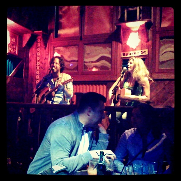 her og der kunne me høyre rop og skrik av fotballkampen som var inne i sine siste minuttar. og etterpå kom tutande bilar køyrande med vaiande spanske flag og tilhøyrande spanjonlar i gledesrus. etter eit ublidt møte med ei metrodør som small igjen i meg, fann me oss sjølv utanfor hotel du midi igjen. rett over vegen hadde me lagt merke til ein australsk bar. sjeldan vare er verdt eit besøk, så me gjekk inn på det som såg ut til å vera ein studentplass. der spela eit australsk to-mannsband til ein lystig gjeng som sikkert nett hadde fått sommarferie.