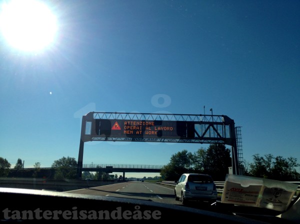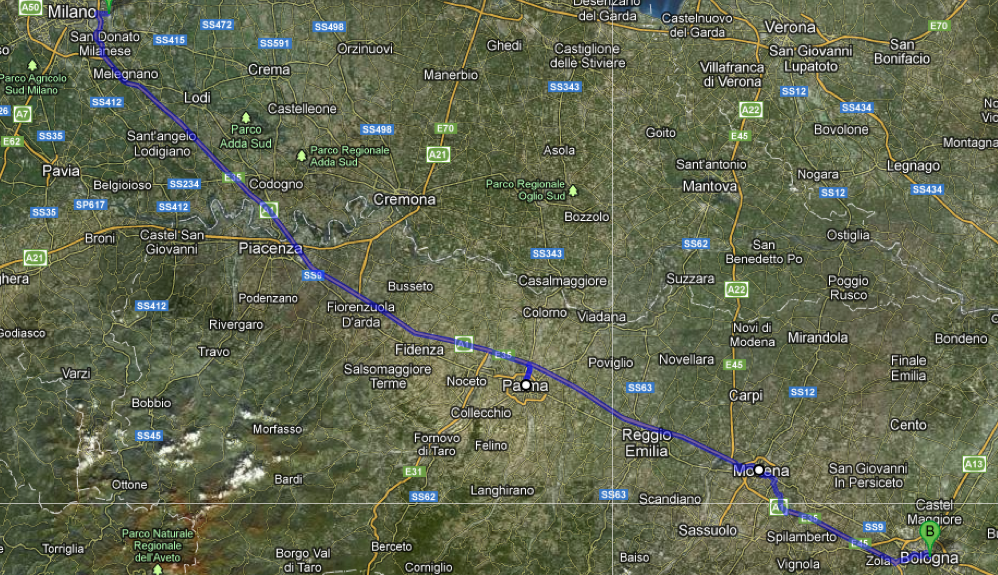 torsdag ankom me linate flyplass utanfor milano omlag 40 minutt etter planen (grunna forseinka nordmenn). me hadde fotoapparatet med oss og gjekk for å få leigebilen vår -ein fiat 500 sjølvsagt! så feis me ut av flyplassen og mot motellet vårt miami. me navigerte med hjelp av mobiltelefonen -ikkje heilt utan problematikk, det måtte eit par u-svingar til, men me fann til slutt fram til «drive-in» motellet. om eg skal beskrive miami med eit ord, må det vere «fascinerande». rommet bestod av ei svær seng, speglar på alle veggar, inkludert i taket -der det også var plassert ein lysinnstallasjon som eg ikkje veit kva funksjon hadde. i gåvekorga på badet som normalt sett tilbyr såpe, shampo og skopuss låg det også kondomar. classy. det viktigaste var at me fekk ei natts søvn og ein nokså bra frukost neste dag. så då var me klar til å «hit the road». via motorvegen A1 som går frå milano til napoli, kom me oss veldig fort frå den eine byen til den andre. me såg raskt at det gjaldt å vere vaken og ha begge henda festa godt på rattet, for italienerane køyrer som villsvin. fyrste stopp var i parma, ein fin, «liten» by kor me åt ein god lunsj og spaserte litt rundt. verdt å sjå her: battistero og museo diocesano. vegen gjekk vidare til modena, pavarotti (og sikkert mange andre) sin heimby. her var det ein pågåande filosofi festival, så det var plenti folk  overalt. me tok berre ein kaffi der for me ville ikkje kome for seint til dagens siste destinasjon: bologna. me ankom rundt klokka 18, og sjekka inn på hotellet vårt cavour.