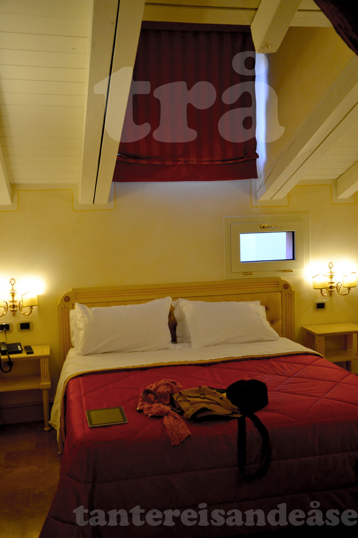 veldig fint hotell til ein relativt billig penge og me skulle snart erfare at det stod fint i stil til byen. lonely planet kalla bologna for verdas mathovudstad, og her var det vanskeleg å gå feil om du skulle ha noko å ete. små, koselege matplasser overalt. hotellet låg ganske sentralt -ikkje langt frå piazza del nettuno som saman med piazza maggiore var byens sentrum. me åt på fine battibello og sat på sida av eit par danskar. etter ei stund spurte mannen dama si kva språk ho trudde me på nabobordet snakka. etter ei stund foreslo dei at det kunne vere nederlandsk.