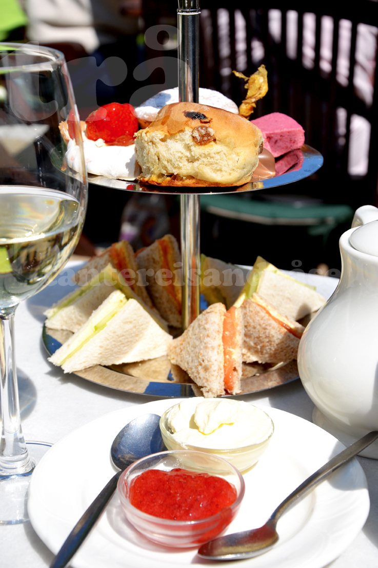 sidan han budde her i st. peter port, betyr det at me har vore både på heimstaden og gravstaden hans. «gravkammeret» hans såg me nemleg i paris. huset hans er berre ope til visse tider og tilbyr då guida turar. me traff ikkje på desse tidspunkta verken idag eller igår. men god lunsj på ein solfylt terrasse fekk me oss. mannen fekk afternoon tea, med små sandwichar, søtsaker, og skikkeleg engelsk te.
