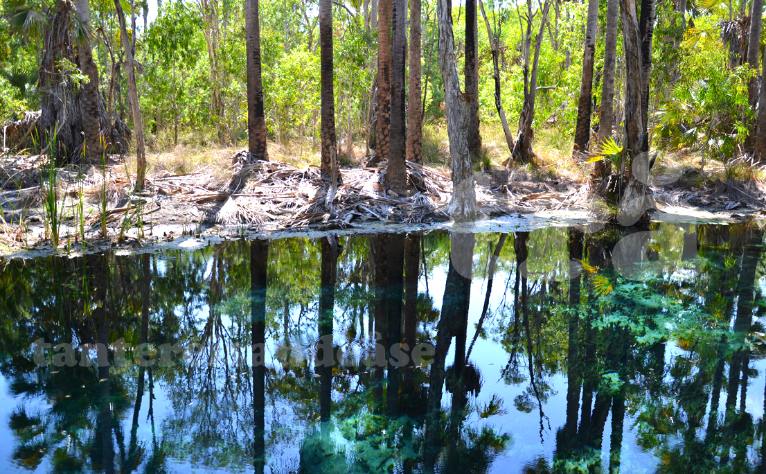tidleg neste morgon var me klare for å nå dagens første mål som var mataranka thermal pool. me svinga innom bitter springs før me kom så langt, mest fordi me såg på feil vegskilt, men det var absolutt verd omvegen. bitter springs var eit vatn så klart at du kunne sjå botn og vel så det, og naturen rundt var eit fint avbrekk frå den travle motorvegen me kom frå.