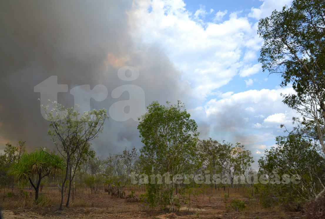 neste stopp tok me på warradjan aboriginal cultural center, kor me fekk læra om aboriginane i dette området sine skikkar og levemåtar. me lærte korleis dei jakta, og kva dei jakta på. i suvenirbutikken deira fann me flogenett til å ha på hovudet, noko som kanskje er det smartaste kjøpet me har gjort på turen. no var me verkeleg klare for outbacken! litt etter skjema gassa me på vidare gjennom kakadu. fleire stader såg me røyk frå brannar, men på warradjan hadde me lært at dei innfødde brente av områder under kontrollerte former. det same som me gjer i noreg med bråtebrann.
