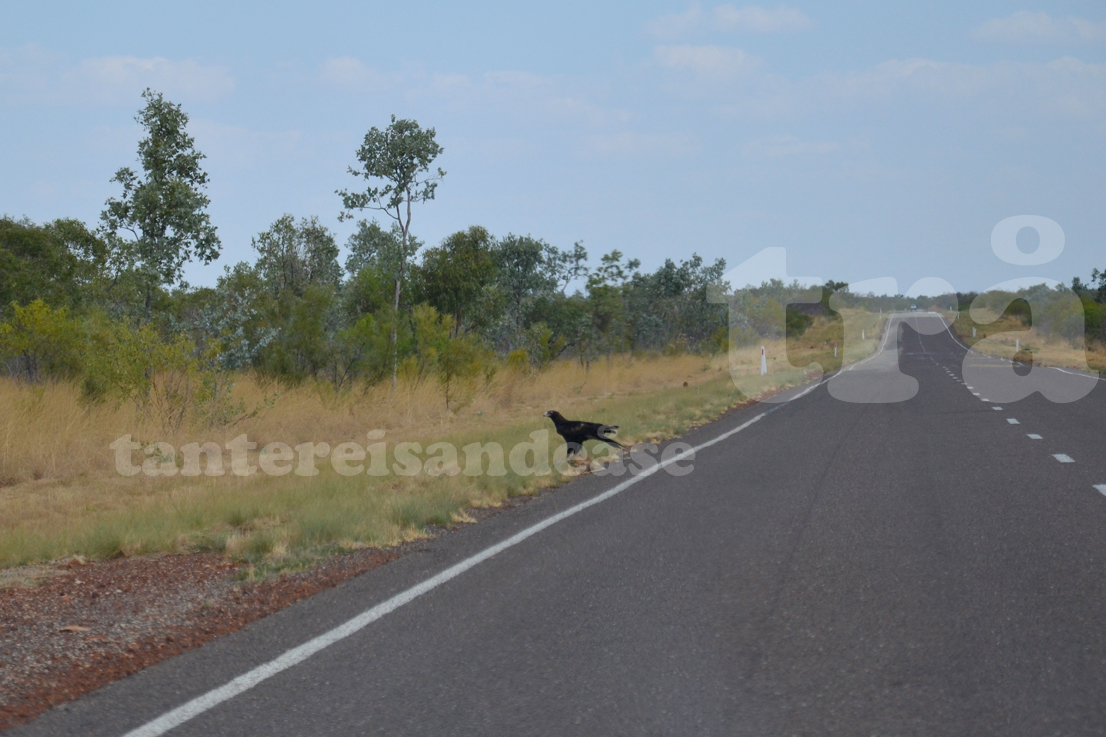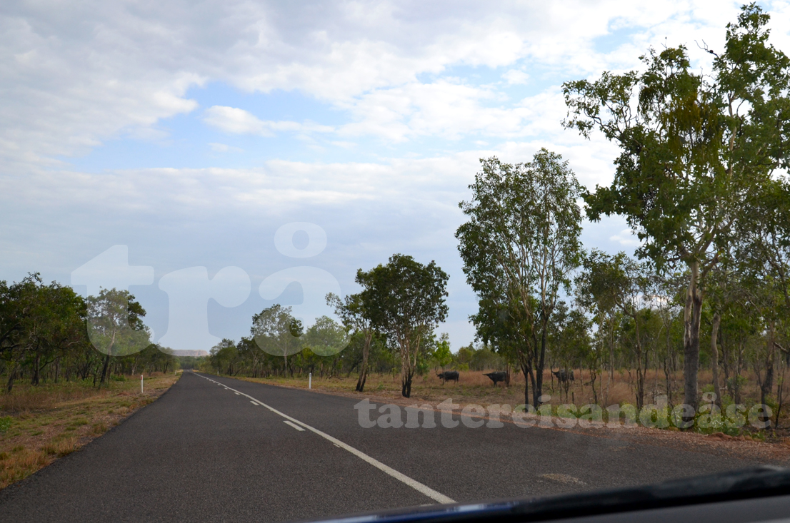 klokka ni måndag morgon troppa me opp på avis bilutleige sitt lokale i darwin. me fekk tildelt vår blå kia, og plotta inn det første målet vårt -kjøpesenteret casuarina. me måtte hamstra vatn, mat og andre naudsynheiter til den lange reisa vår. like etter var me på arnhem highway, på veg mot kakadu nasjonalpark. me bunkra bensin i bark hut, før me feis vidare i 130 (minst). kia’en gjekk overraskande bra og me tok igjen dei fleste andre køyretøy. noko som eg vil understreke -ikkje er noko mål i seg sjølv! skumlast var dei enormt lange road train’a, som hadde opptil 4 tilhengjerar etter seg fordelt på over 50 meter, og som ein måtte rekna mest ein kilometer å koma forbi.