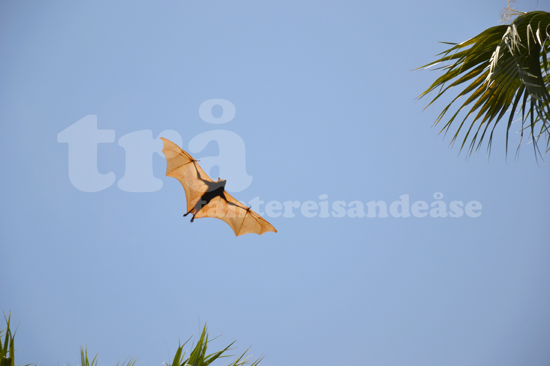 me kunne nok ha tatt ein dukkert her, men hasta vidare til mataranka, der det var naturleg oppvarma vannhól. frå tretoppane høyrde me kjeftinga frå tusen flygande revar, eller flaggermus som me kjenner dei best som. der hang dei på rekkje og rad etter føtene og me skjøna kor flokken me hadde sett kvelden før kom frå.