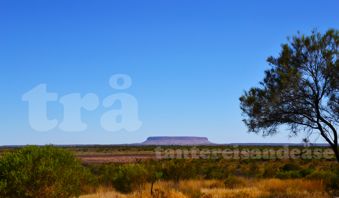 fjellformasjonar og klipper som me ikkje har sett maken til -alt i raudt. me stoppa opp og åt niste og nytte roen som rådde der oppe. eg fekk meg jammen eit insektsstikk også, som var turens første. me konkluderte med at kings canyon var vel verd eit besøk, og me var spesielt glade for at me hadde tatt denne fjellturen. rundt klokka ett var me nede att, og klar for neste etappe. no sette me kursen mot uluru og kata tjuta. då me først skimta eit fjell som stakk opp av det flate landskapet trudde me at dette var uluru. men det skulle vise seg å vera mount conner og stakk 300m opp frå bakken -vel 850m over havet.