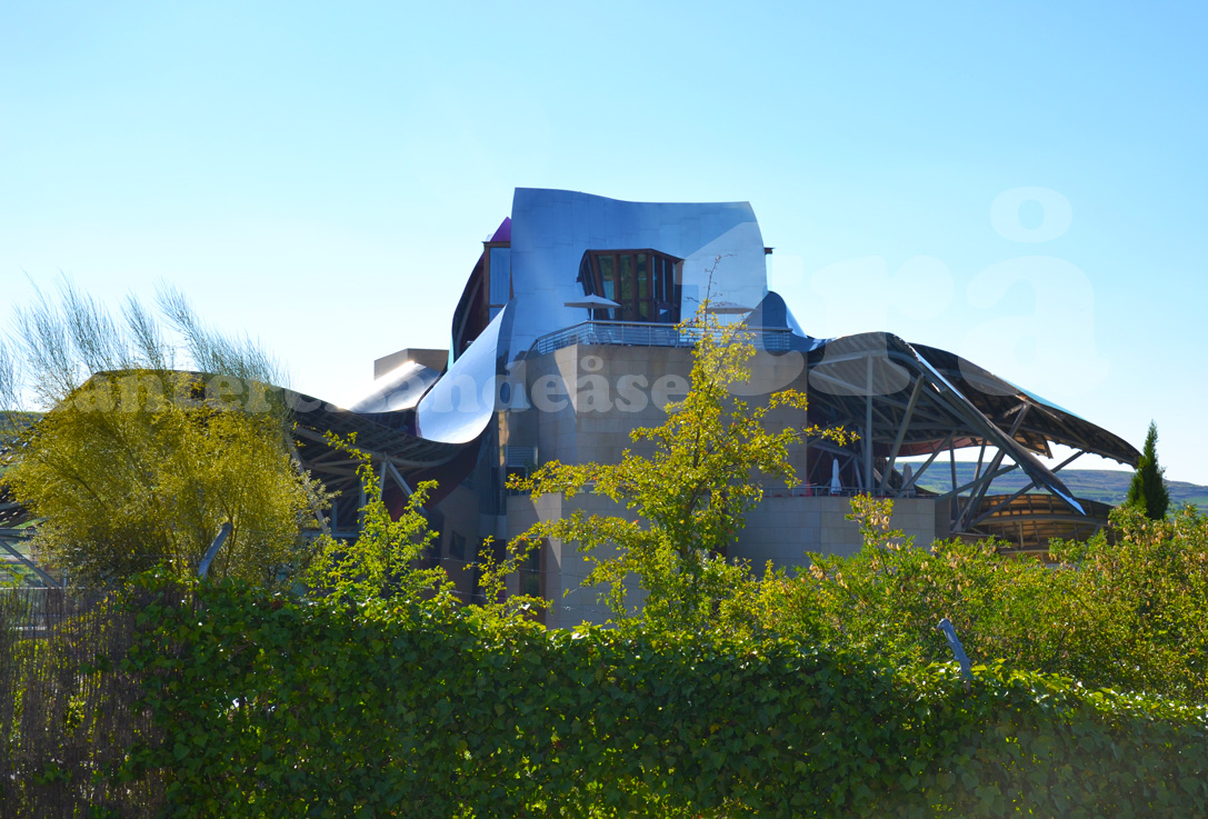 til no hadde me nesten ikkje truffe nokon bilar på vegane, og kor var alle turistane? så flott og pustmistande denne delen av landet er, så fortener den fleire besøkjande. men misforstå meg rett, det var svært behageleg å unngå turisthordene, og heller ha alt dette for oss sjølv. me var på veg til la rioja sin «hovudstad» logroño, og på vegen fekk me også med oss vinhotellet marques de riscal i elciego, som er teikna av frank o. gehry, samme arkitekten som står bak guggenheim-museumet i bilbao (og hotellet me budde på i same by). men me fekk berre sjå det på avstand. det var godt vakta av høge gjerder og portar, så eg veit ikkje korleis me skulle ha kome oss inn dersom me hadde bestemt oss for å overnatta her.