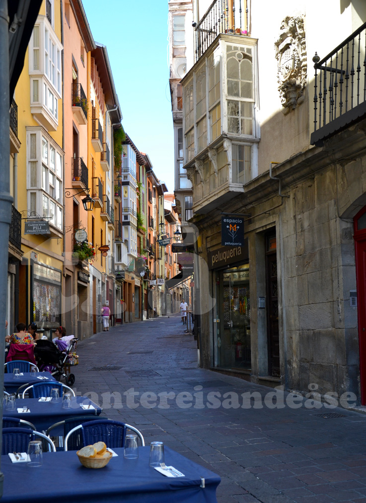 reint og fint med små koselege gater, og i enden av ei av dei: ein majestetisk katedral som såg omlag ti gonger så gamal ut som den eigentleg var. den var nemleg berre litt eldre enn oss (og me er ganske unge altså!). så kva skulle ein ta seg til i denne fine byen? jo, me måtte eta lunsj. og kor er det vel ikkje betre å ta ein baskisk lunsj enn på ein klassisk sideria spurde me oss sjølv. me sette oss utanfor asador sagartoki men vart snart «jaga» inn av den flinke og hyggjelege servitøren, den einaste som snakka engelsk skulle me snart finna ut. han tok oss med innover og enno lenger innover i lokalet. forbi baren og gjennom ein gang, og bak der openbara det seg den finaste restauranten. den var kledd i svart, så du fekk inntrykk av å vera på den mest romantiske «tusen og ei natt» settinga du kan tenkja deg. servitøren foreslo ulike smårettar for oss og me syntest det høyrdes veldig bra ut. det var det også. så godt og så enkelt! dei saftigaste tomatane du kan tenkja deg, dei mest smakfulle ansjonane du har smakt, osteboller som smelta på tunga, friterte artisjokkar med avokadodip og for å toppa det heile: perfekt steikt, kvit fisk. me var så mette då me gjekk ut at det gjorde nesten vondt. men me kunne ikkje dvela ved denne byen, me skulle som alltid vidare. og turen gjekk vidare gjennom eit landskap me ikkje har sett maken til. sletter så langt auga kunne sjå, med slake fjell på begge sider og små toppar kor landsbyar hadde klatra opp på. øvst på kvar topp stakk eit kyrkjetårn opp. alt i jordfargar, men likevel så fargerikt. me byrja å nærma oss vindistriktet la rioja, så vinrankane kom tettare og tettare. det var nesten som ein kunne kjenna kor fløyelsmjuk raudvinen som kom frå dette slumrande og varme området måtte vera. den sørlege grensa for baskarland går langs elva ebro og me kryssa den eit par gonger. før kveldens siste stopp, køyrde me innom (lands)byen labastida som mannen på turistinfoen i san sebastian hadde ringa ut på kartet for oss. ein pittoresk men søvnig liten plass.