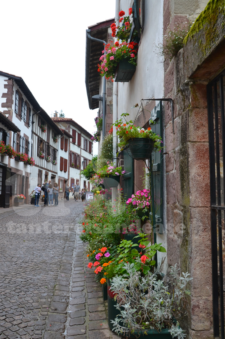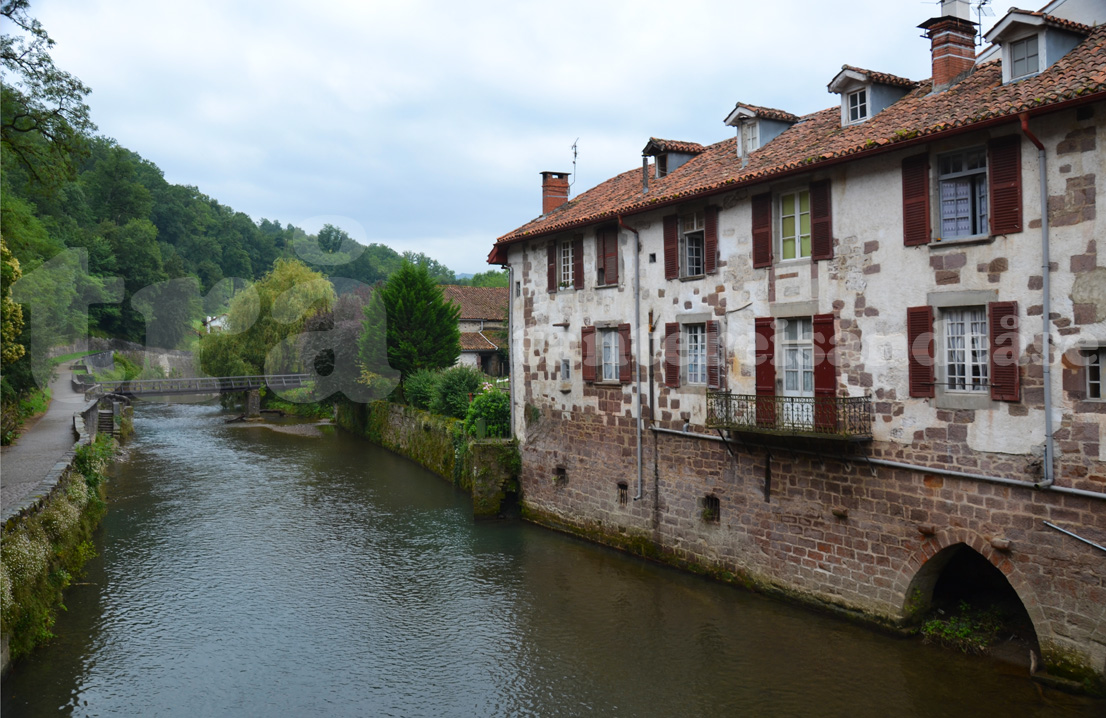 den første byen me støytte på var saint-jean-pied-de-port, der me tok eit planlagd stopp. det var ein slags marknad då me kom der denne fredagen, og i dei små, koselege gatene hadde lokale forhandlarar sett opp små boder. du kunne kjøpa alt mogeleg, frå kjøt og ost til såper og handdukar. baskarlogoen var eit populært merkje på alle varene. franskmenna var altså stolte baskarar dei òg. denne byen er også ein viktig stad på pilegrimane si rute til santiago de compostela, og det skulle visa seg at både dei, og alle rekvisittane dei kunne finna på å kjøpa, var representert i denne vesle byen. det krydde av turistar her, ikkje veit eg om den pågåande marknaden var ein av grunnane til det, men eg hadde på følelsen at dette var ein by mange berre reiste gjennom, og at roa senkja seg her om kvelden. me gjekk over ei bru