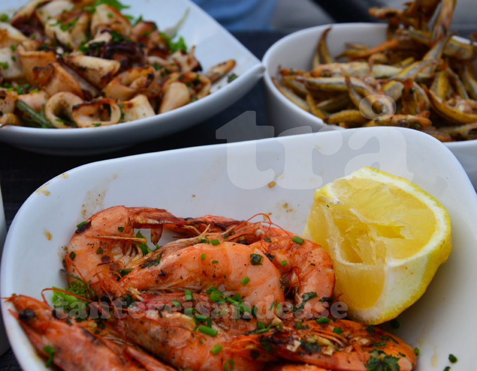 og dei siste solstrålene som skein. etterkvart gjekk me vidare lags sjøen, ut på ein molo med ei mariastatue. derifrå såg me inn i ei lita bukt som såg fin ut for kveldens siste måltid. me fekk rykande fersk sjømat medan sola vart blodraud og gjekk ned i havet bak oss.