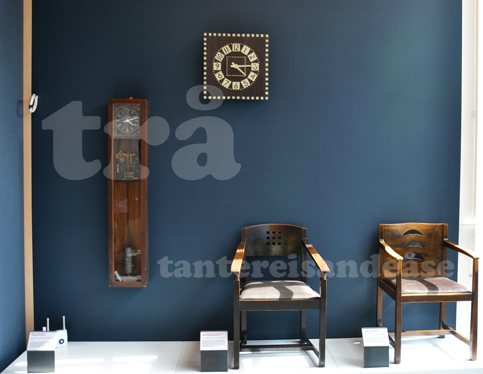 eg kjøpte billettar til ei omvisning, og ein student tok oss med rundt og fortalde. det hadde sjølvsagt vore kjekkast om me fekk gå inn i den gamle skulen, men me nøydde oss med å sjå den utanfrå. me fekk også sjå originale møblar designa av mackintosh og kona margareth macdonald.