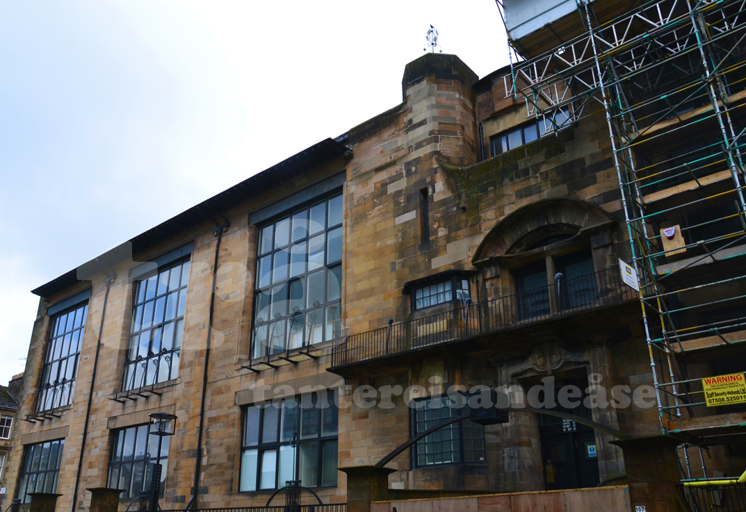 neste morgon åt eg frukost åleine på hotellet. ei ny oppleving for meg, men heilt sikkert på høg tid. etter å ha drukke altfor mange koppar kaffi, sett på folk og ete meir enn eg burde, gjekk eg ut for å sjå litt nærare på byen. me har vore i glasgow ein gong før, for omlag 14 år sidan, då me var på interrail i storbrittania og irland. då som no var eg intressert i byen sin mest kjende arkitekt, designar og kunstnar charles rennie mackintosh. og sjølv om me besøkte hans mest kjende verk «glasgow school of art» sist gong, ville eg få det med meg denne gongen også. det var eit desto større sjokk som møtte meg då eg ankom skulen og fekk høyra at den hadde brunne i mai 2014. ein kunne ikkje sjå noko teikn til det på utsida (utanom stillas og gjerder), men desverre var noko av interiøret øydelagt.