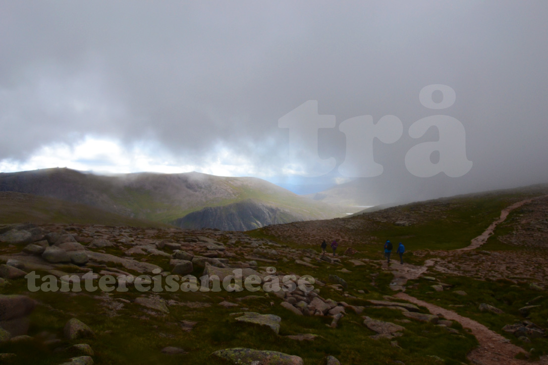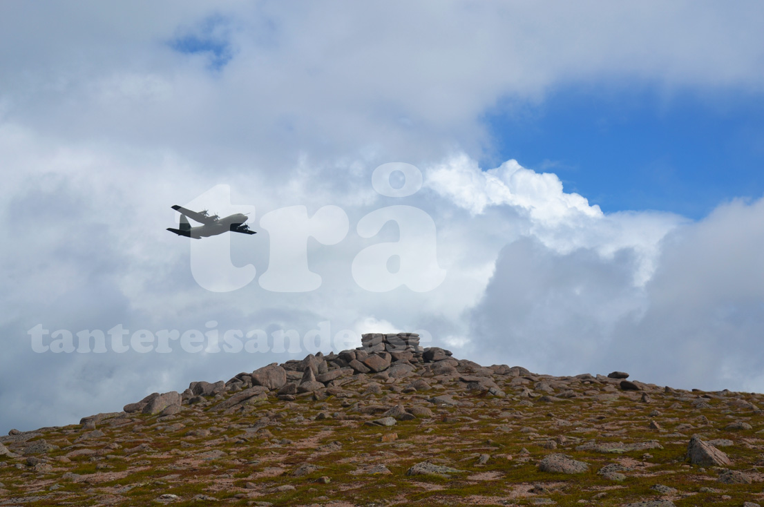 neste morgon var det frukost på det ærverdige hotellet. alt ein kunne ynskja seg av mat eigentleg, både kaldt og varmt. det la eit godt grunnlag for fjellturen me hadde planlagt. rett ved aviemor ragar nemleg sjølvaste cairn gorm 1245 moh. fjellet som har gitt namn til den store nasjonalparken som ligg midt i the highlands. me kunne ikkje ta taubanen opp, for då hadde me ikkje fått lov til å gå utanfor taubanelokalet sitt området (idiotisk!), men det la ikkje nokon dempar på oss, som tok fatt på den lange og bratte turen opp fjellsida. halvvegs stoppa me for å pusta på ei stund og eta litt niste, og idét me hadde funne ein stor stein til å søkja ly under, fauk det opp eit fly frå dalen og over hovuda våre.